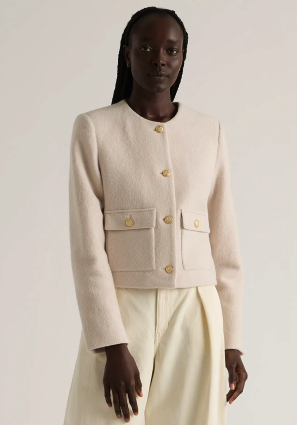 There are few pieces that hit 100-percent of the time like an elegant, classic lady jacket. It’s stunning with jeans. It slaps with a pair of wide leg trousers or a pencil skirt. For holiday parties, consider wearing it over a slip dress with a pair of kitten heels. Here are some lovely options in light neutrals.